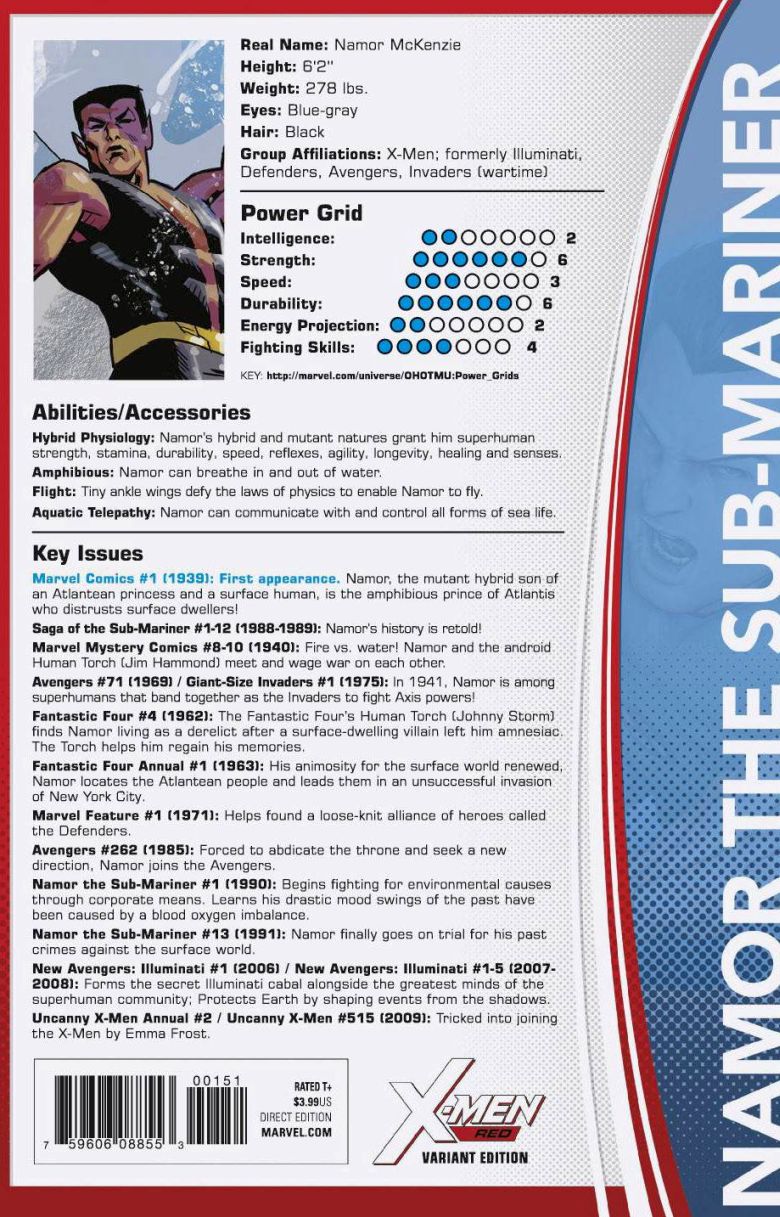 In February 2018, Marvel relaunched (yet again) an X-Men Red series for which several variant covers were available, including the one below. It appears as though it folded out into a fact sheet which I display here for quick reference.